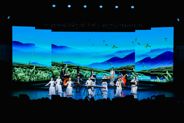 这是一场韵律交织的盛会,更是一首艺术致敬师道的深情礼赞。晚会以浙江音乐学院民族室内乐团带来的民乐合奏《采茶舞曲》开启。琴弦轻颤间,江南水韵潺潺流动,晨曦中的茶山云雾,恰似师者智慧如清茶般沁人心脾、余韵悠长。