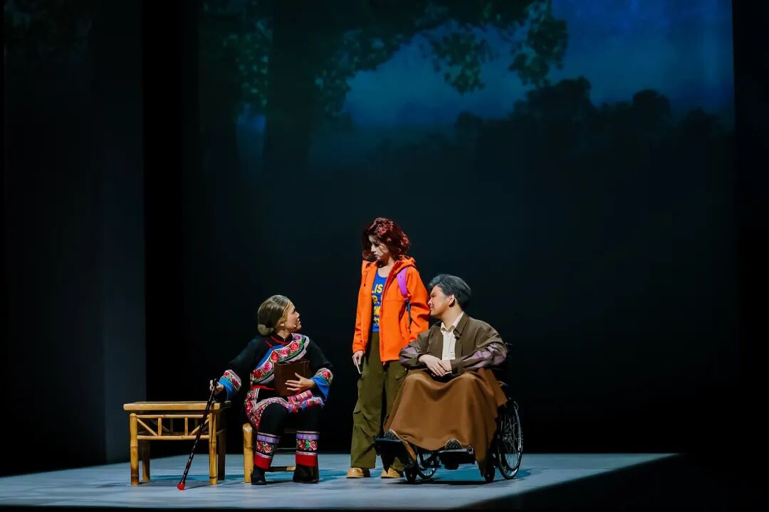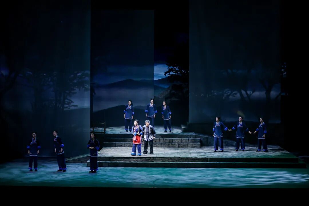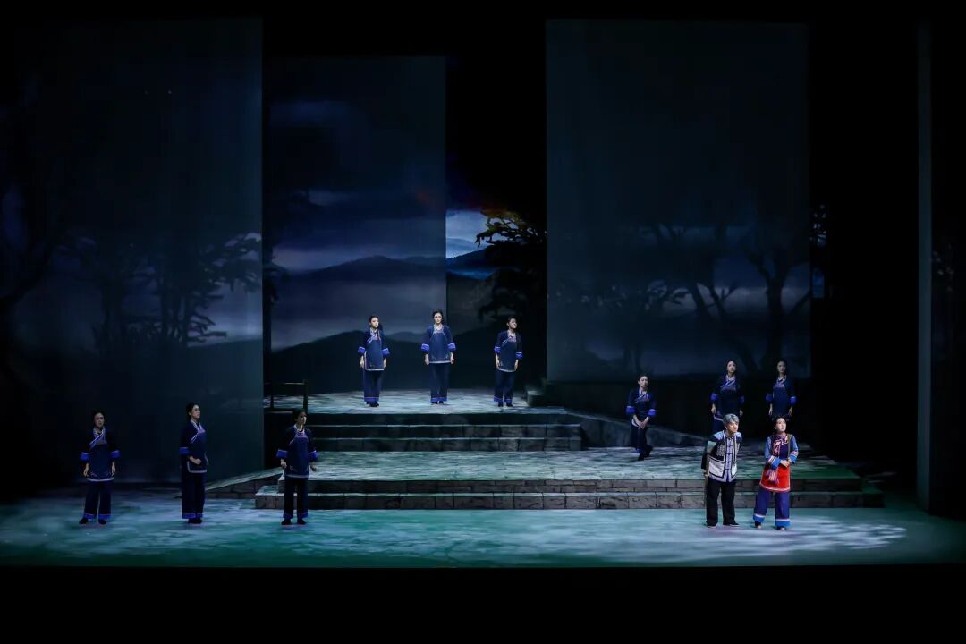 在艺术呈现上,作品巧妙运用1944年与2025年双时空交织的叙事结构,将畲族文化传统、抗战历史记忆、英士大学办学史与浙南山乡独特风貌融入叙事。值得一提的是,作品深度融合畲族文化元素。剧中蓝翠翠的唱腔保留了畲族山歌特有的颤音节奏,村民的集体舞蹈严格复刻了畲族“踏步摆腰”的传统动作,舞台上的每个画面都在诉说着浓浓的民族风情。