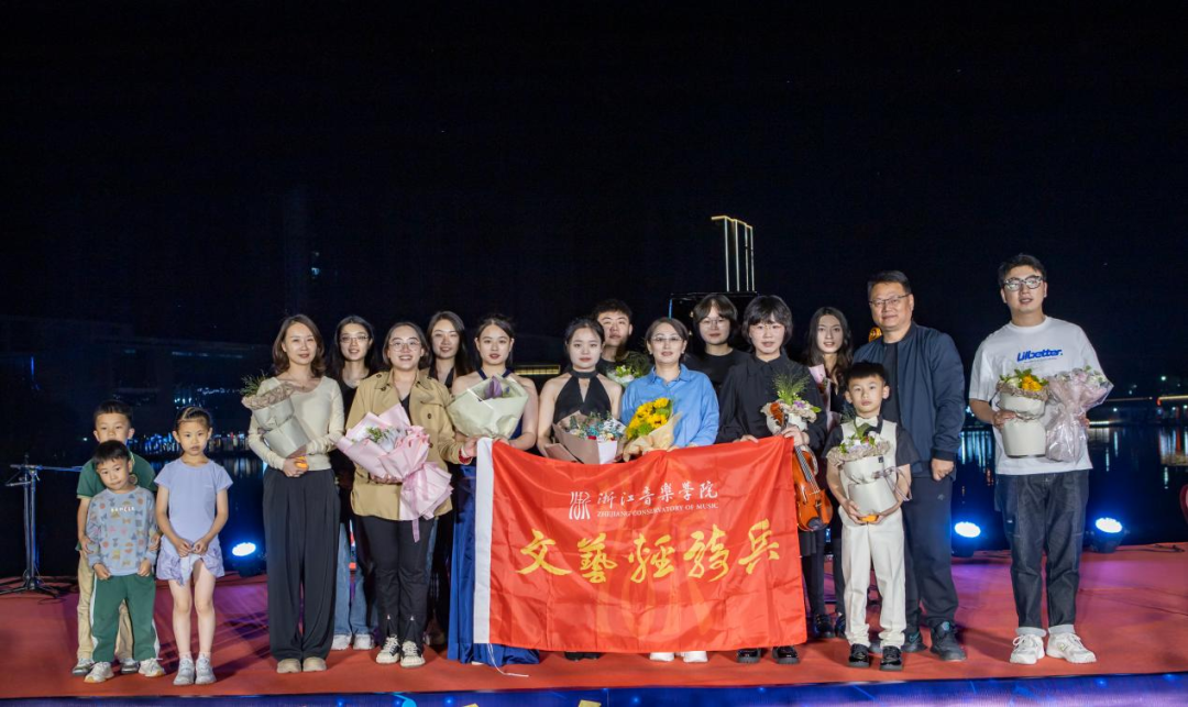 5月23日晚,在美丽的“温泉之城、萤石之乡”武义县市民广场的音乐驿站旁,一场浪漫的水上钢琴音乐会启幕。浙江音乐学院钢琴系“文艺轻骑兵”成员研究生徐若斌与钢琴系的师生们一起回到自己的家乡,将高雅艺术送到百姓身旁,共度音乐之夜。