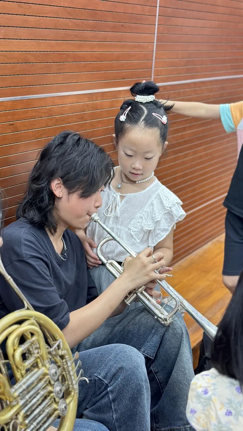实践团的同学们先以一曲亚运主题歌曲《等你来》调动起了小朋友们的热情,并以亲切的方式,简洁的形式给在场的家长与孩子们普及管弦乐的相关知识。介绍结束后,同学们还与现场的小朋友们进行互动,给他们传授各种学习小技巧、讲述各类乐器特点,让孩子们感受音乐的魅力。