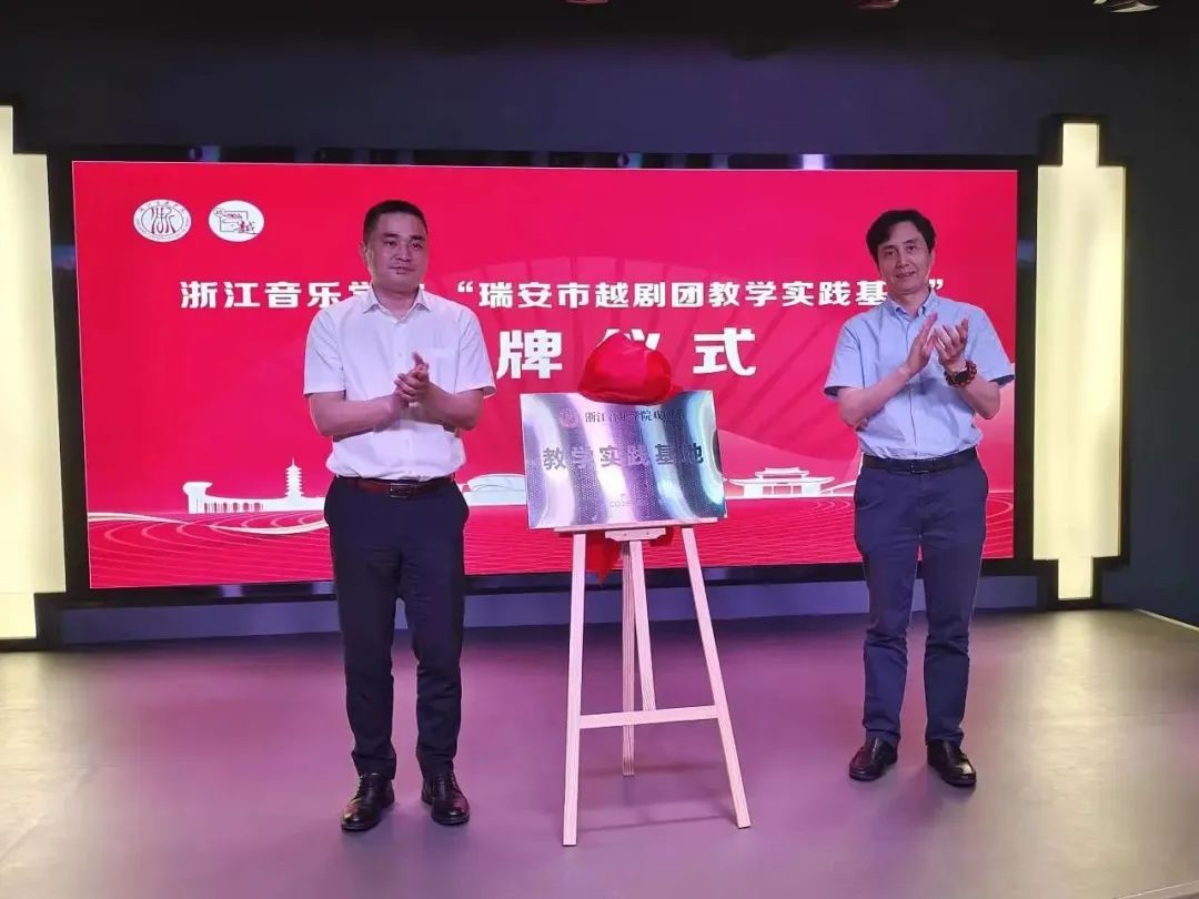随后,浙江音乐学院戏剧系总支书记、副主任安怡和中共瑞安市委常委、宣传部长孙寒星签订了共建实践基地协议并举行了授牌仪式。授牌仪式后双方就人才培养、艺术实践、流派唱腔等问题进行了深入的交流。此外还调研考察了南戏传承研究中心、南戏馆、瑞安越剧团等地,观看了瑞安越剧团演出的越剧《琵琶记》。