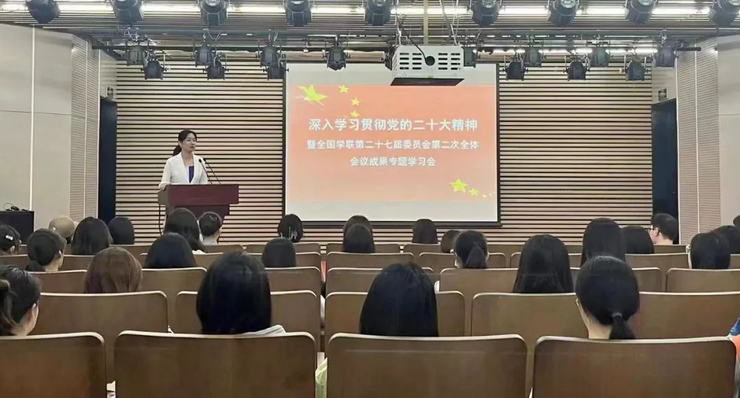 会上,徐晓昀对学生会、研究生会接下来的工作做了进一步的要求。陆政妍受校学生会、研究生会主席团委托,领学了全国学联印发的《在全国学联第二十七届委员会第二次全体会议上的工作报告》《认真学习宣传贯彻党的二十大精神团结带领广大同学坚定跟党走、奋进新征程》《关于认真学习宣传贯彻党的二十大精神团结带领广大同学坚定跟党走、奋进新征程的决议》《中华全国学生联合会委员会、主席团工作规则(试行)》等文,传达了全国学联第二十七届委员会二次全会精神。本次会议主题为高举习近平新时代中国特色社会主义思想伟大旗帜,认真学习宣传贯彻党的二十大精神,深入贯彻习近平总书记关于青年工作的重要思想和关于教育的重要论述,坚持党的领导,把握时代主题,牢记服务宗旨,勇于自我革命,团结带领广大同学在全面建设社会主义现代化国家的道路上永远跟党走、奋进新征程。文件指出认真学习宣传贯彻党的二十大精神,是当前和今后一个时期各级学联学生会组织的首要政治任务。学联学生会是党领导下的青年群团组织,学联学生会工作是党的青年工作的重要组成部分,要带头聚焦政治引领,以习近平新时代中国特色社会主义思想为指导,认真学习宣传贯彻党的二十大精神,要牢记总书记的嘱托,勇担职责使命,争做有理想、敢担当、能吃苦、肯奋斗的新时代好青年,坚持用习近平新时代中国特色社会主义思想武装头脑、指导实践、推动工作,引领广大同学深刻领悟“两个确立”的决定性意义,增强“四个意识”、坚定“四个自信”、做到“两个维护”。