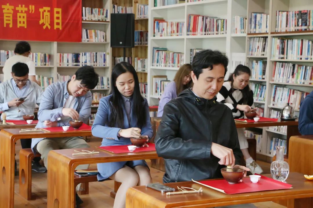 此次活动在村书记的带领下戏剧系教师党员在参观完慈母桥村后,来到杭州图书馆茶文化主题分馆就校地党建进一步合作、文艺下乡演出等内容再次进行了深入的交流,并且在茶艺师的讲解下体验了宋代点茶的技法。