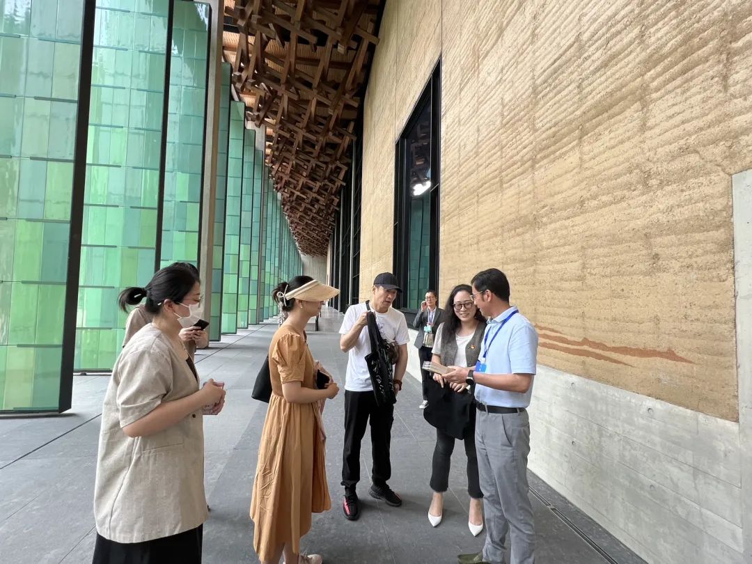 为贯彻落实开展“循迹溯源学思想促践行”活动精神,引领广大党员、教职工在循迹溯源中联系实际、立足岗位深挖红色富矿、溯源精神谱系,使“八八战略”入脑入心,让主题教育走深走实。6月14日下午,流行音乐系党总支开展“循迹溯源·学思践悟”主题党日活动,走进有着温润青釉色的现代宋韵建筑——国家版本馆杭州分馆,版本馆副馆长邬平福、流行音乐系党总支副书记周熠及流行系师生党员参加了此次活动。