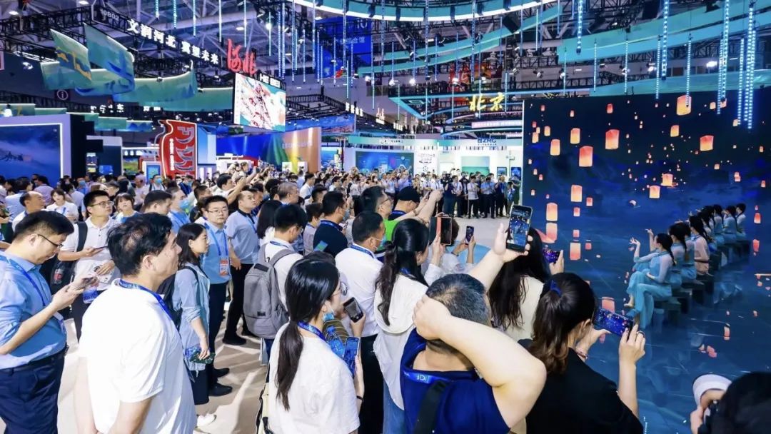 溪水淙淙,江南女子踏石而行从桥上缓缓走来。本届文博会浙江馆围绕“诗画江南,活力浙江”的主题展开,呈现极具地方特色的文化盛宴。《碇步桥》亮相首次设立的数字中国展区浙江展区的数字画卷《光影万象·水墨江南》,以虚拟现实引擎驱动空间投影技术,集视觉、听觉、触觉、嗅觉等多感官实时交互装置融入其中。融合江南扎染色彩,在细腻、整齐、灵动的形式建构下,展现了浙江富饶灵秀的自然风貌和热情好客的人文情怀,更寓意着中华大地无处不在的生机与活力。