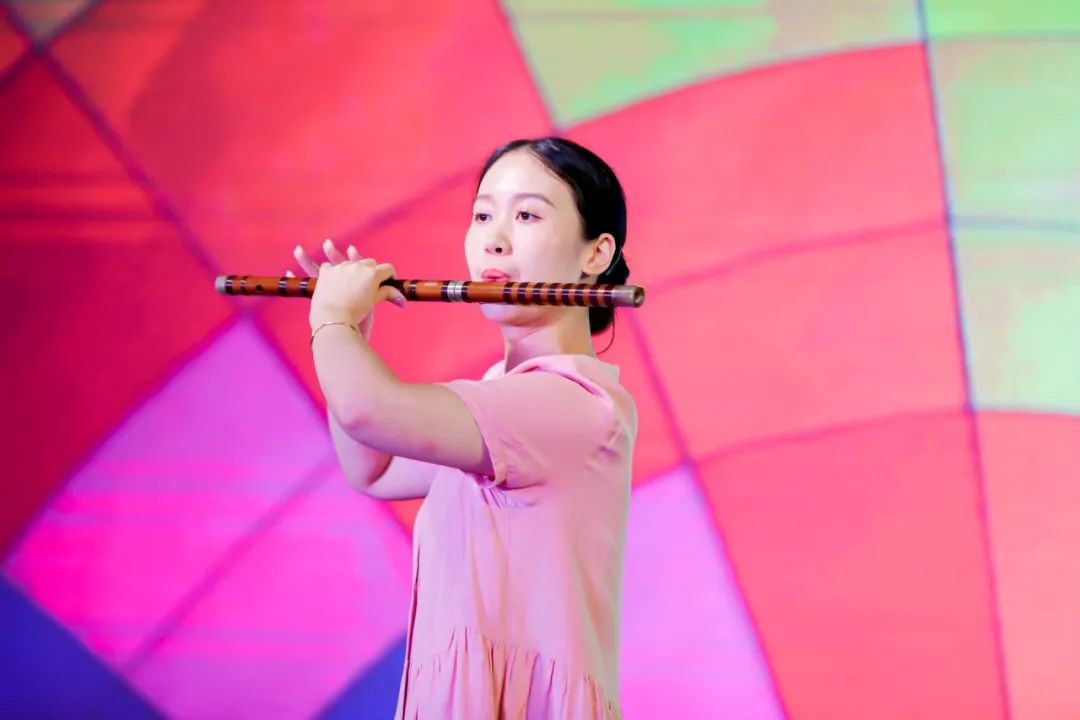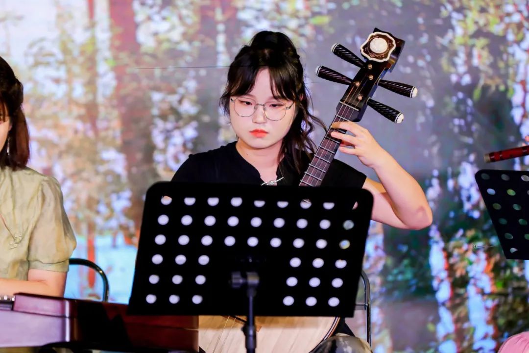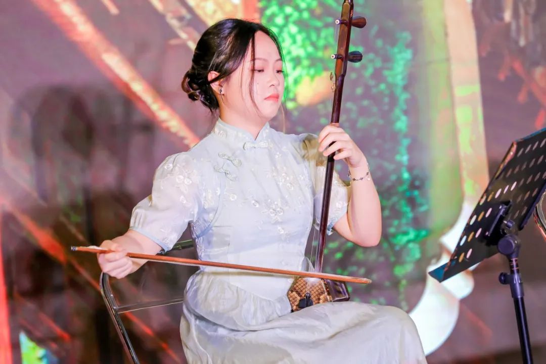 活动现场同学们的演出节目包括:器乐合奏《花头台》、《紫竹调》;古筝独奏《渔舟唱晚》;二胡独奏《良宵》;扬琴独奏《将军令》;中阮独奏《玉楼月》;笛子独奏《欢乐歌》;渔鼓道情《乌鸦与狐狸》《十杯香茶》,以及传统乐器“先锋”展示与声音设计作品《见龙在田》。