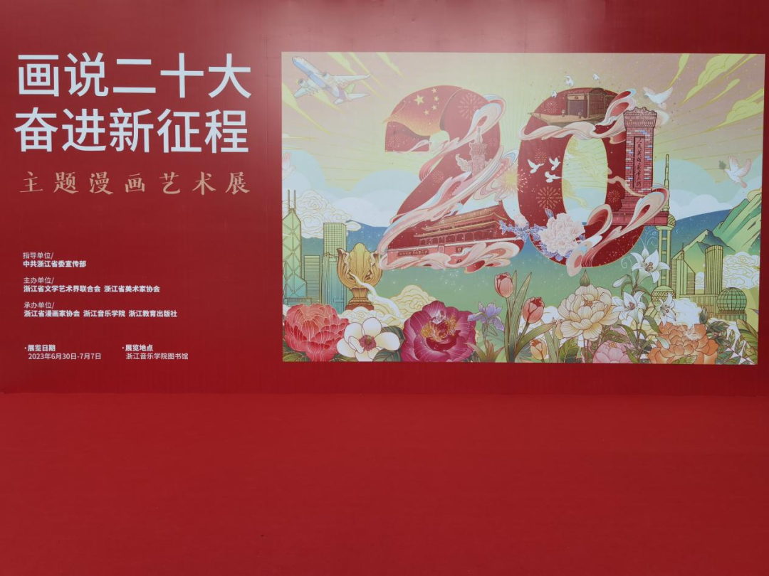 6月30日,在中共浙江省委宣传部指导下,由浙江省文学艺术界联合会、浙江省美术家协会主办,浙江省漫画家协会、浙江音乐学院和浙江教育出版社承办的“画说二十大·奋进新征程”主题漫画艺术展在浙江音乐学院图书馆开幕。