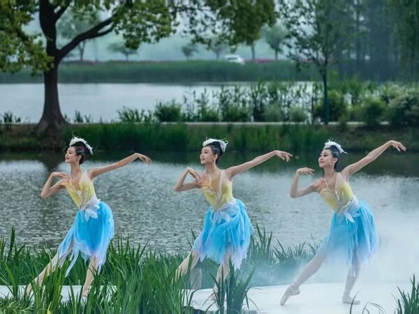五一国际劳动节到来之际,舞蹈学院12名芭蕾舞学生在芭蕾教研室主任周瑾、青年教师潘琳带领下前往江苏无锡,参与《中国美·劳动美——2023年五一国际劳动节“心连心”特别节目》芭蕾作品《太湖美》的表演。该作品是继《织·梦》《碇步桥》等作品后,舞蹈学院师生第5次登上央视舞台,也是浙音舞蹈表演专业(芭蕾舞方向)学生首次亮相央视。该节目于5月1日晚八点档在CCTV-1(综合频道)、CCTV-3(综艺频道)、CCTV-15(音乐频道)播出。