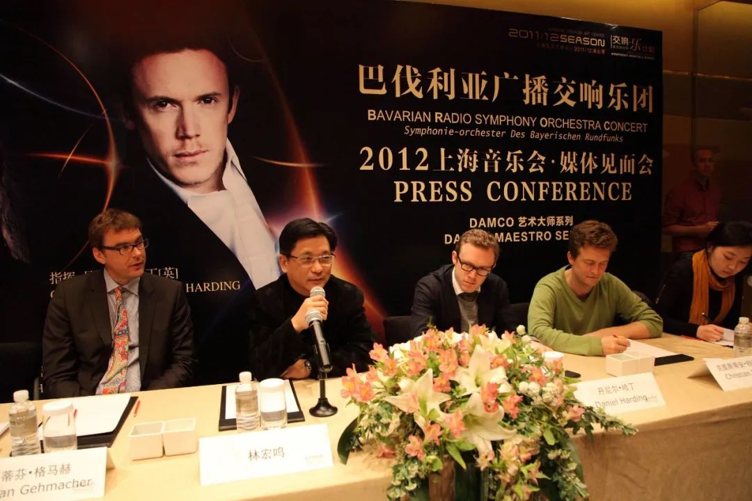 指挥家丹尼尔·哈丁携德国巴伐利亚广播交响乐团媒体见面会。左2为作者,左3为哈丁,左4为克里斯蒂安·特兹洛夫