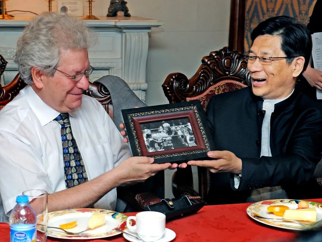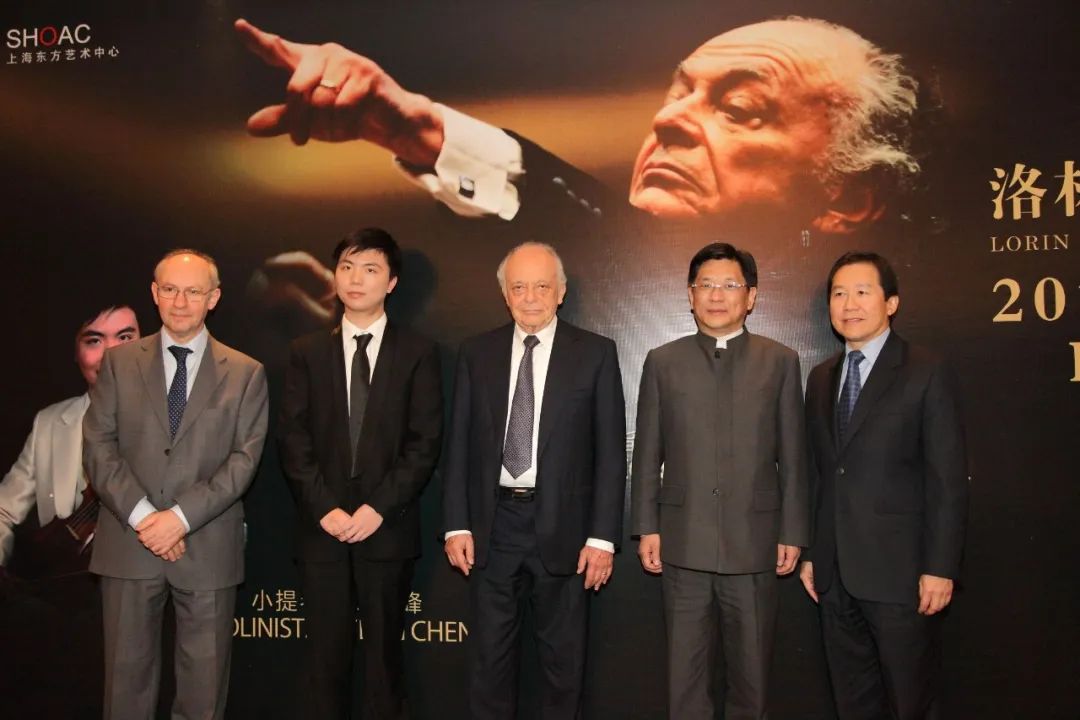 洛林·马泽尔与陈佳峰同台演奏“柴小”的媒体见面会。左2陈佳峰,左3洛林·马泽尔,左4为作者