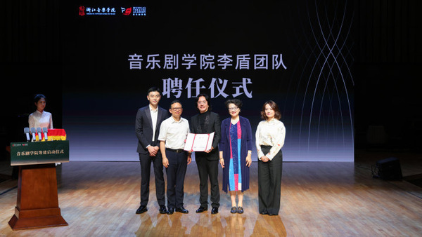 6月19日上午,浙江音乐学院音乐剧学院筹建启动仪式在现代音乐厅举行。现场,浙江音乐学院音乐剧学院和音乐剧中心正式揭牌。这标志着浙音将以“学院+中心”的双轮驱动模式,着力构建具有“产学研创”特色的中国音乐剧学科建设与人才培养自主知识体系,全力打造国际一流的音乐剧人才培养高地。