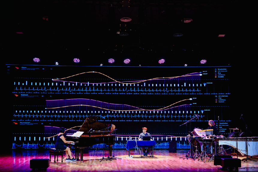 开幕式音乐会汇聚来自中国、希腊、美国、法国、德国等多国作曲家,以前沿科技融合传统器乐表演,呈现了《遐想》——视听艺术现场,《撞裂锥》——为小提琴与电子音乐而作,《宝塔印象》——为 Wacom 数字画板而作的实时作品,《再见,小王子》——人工智能交互音乐表演等7部风格各异的电子音乐力作。在代码与算法编织的声景中,听众得以窥见数字音乐从创作工具到艺术载体的深刻转变,也见证了数智时代音乐创作的多元可能。