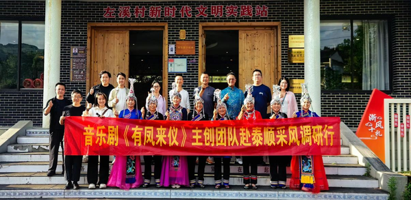 原创音乐剧《有凤来仪》主创团队赴泰顺县司前畲族镇左溪村调研采风。图片来源:浙江音乐学院