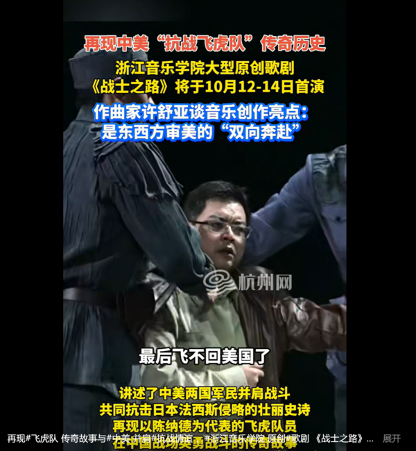 杭州网教育:再现飞虎队传奇故事与中美并肩抗战情谊,浙江音乐学院原创歌剧《战士之路》明起首演 #纪念抗战胜利80周年