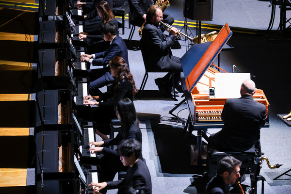 10月30日晚,作为第六届杭州现代音乐节闭幕式演出,由奥地利著名作曲家哈斯为50架钢琴与大型室内乐队创作的《一万一千根弦》在浙江音乐学院体育馆内震撼奏响。这是该作品在亚洲首演,由维也纳现代声音乐团的30余位艺术家与浙江音乐学院钢琴系学生共同演绎。该作品充分展现新的组织逻辑所重构的客观声学形态和艺术美学,成为当代具有重要影响力的一次“音乐事件”。
