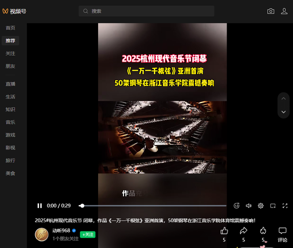动听968:2025杭州现代音乐节闭幕 《一万一千根弦》亚洲首演 50架钢琴在浙江音乐学院震撼奏响