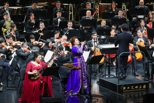 本次首演以中国传统民歌为母题,通过“双独奏+大型交响乐团”这一独特结构,依次演出了《沂蒙山》《飞歌》《绣荷包》《花儿》《囊玛·锅庄》《对鸟·采茶》《赶牲灵》《跳月》《牧歌》《东北风》《渔舟唱晚》《对花》12首新作,构建绵延叙事的民族音乐图景,实现传统素材在当代舞台上的再度升华。