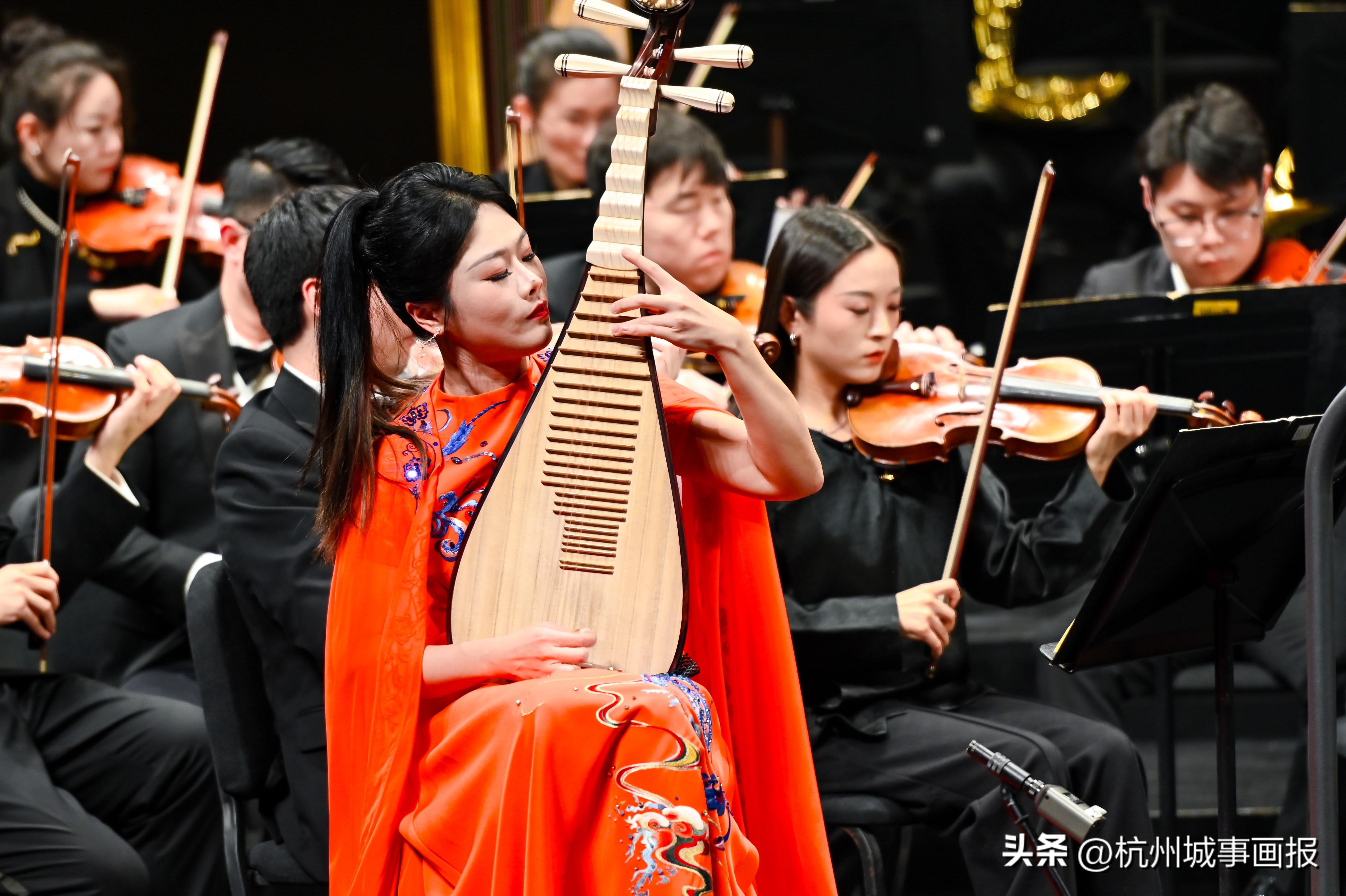 随后,古筝协奏《望云赋》以清透灵动的音韵勾勒出云卷云舒的东方意境,而歌剧选段《爱永在》则以深情的旋律吟咏出真挚隽永的家国情怀。琵琶协奏《丝路飞天》以繁复的指法与丰富的音色变化,再现丝绸之路上的风物与遐思。