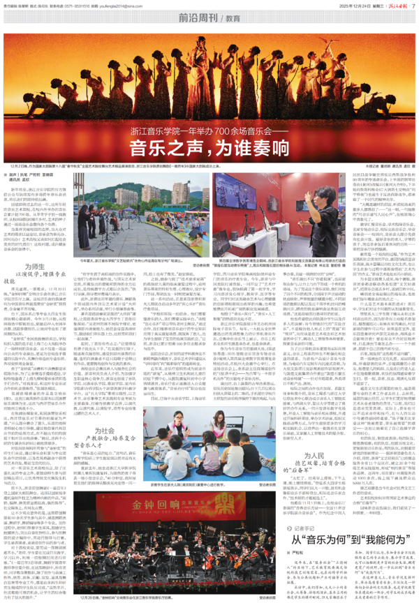 浙江日报:浙江音乐学院一年举办700余场音乐会——音乐之声,为谁奏响