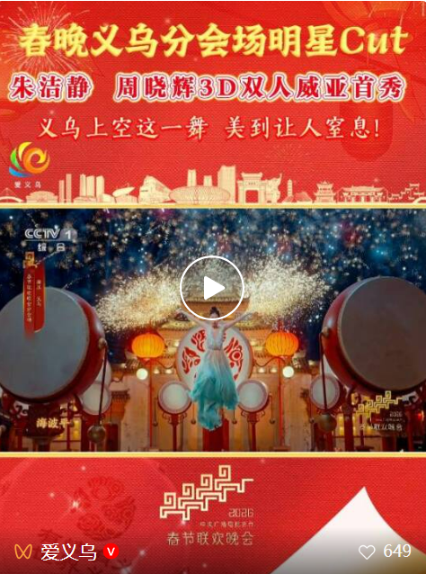 总台2026年春晚义乌分会场,一段30秒先导画面,惊艳亮相。