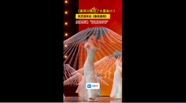 Z视介:孟庆旸和浙江音乐学院学生表演的舞蹈《喜雨》美成了水墨画,好一场春夜喜雨!仿佛看到了雨水飞溅~