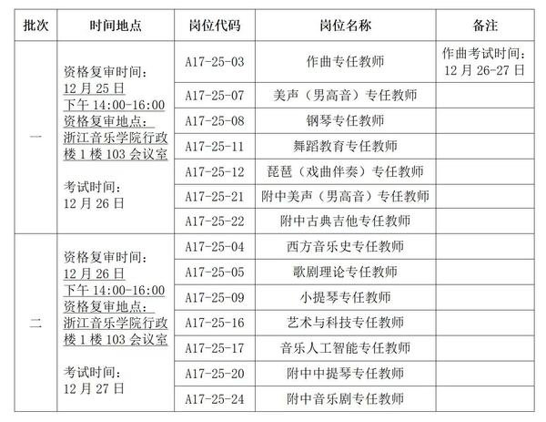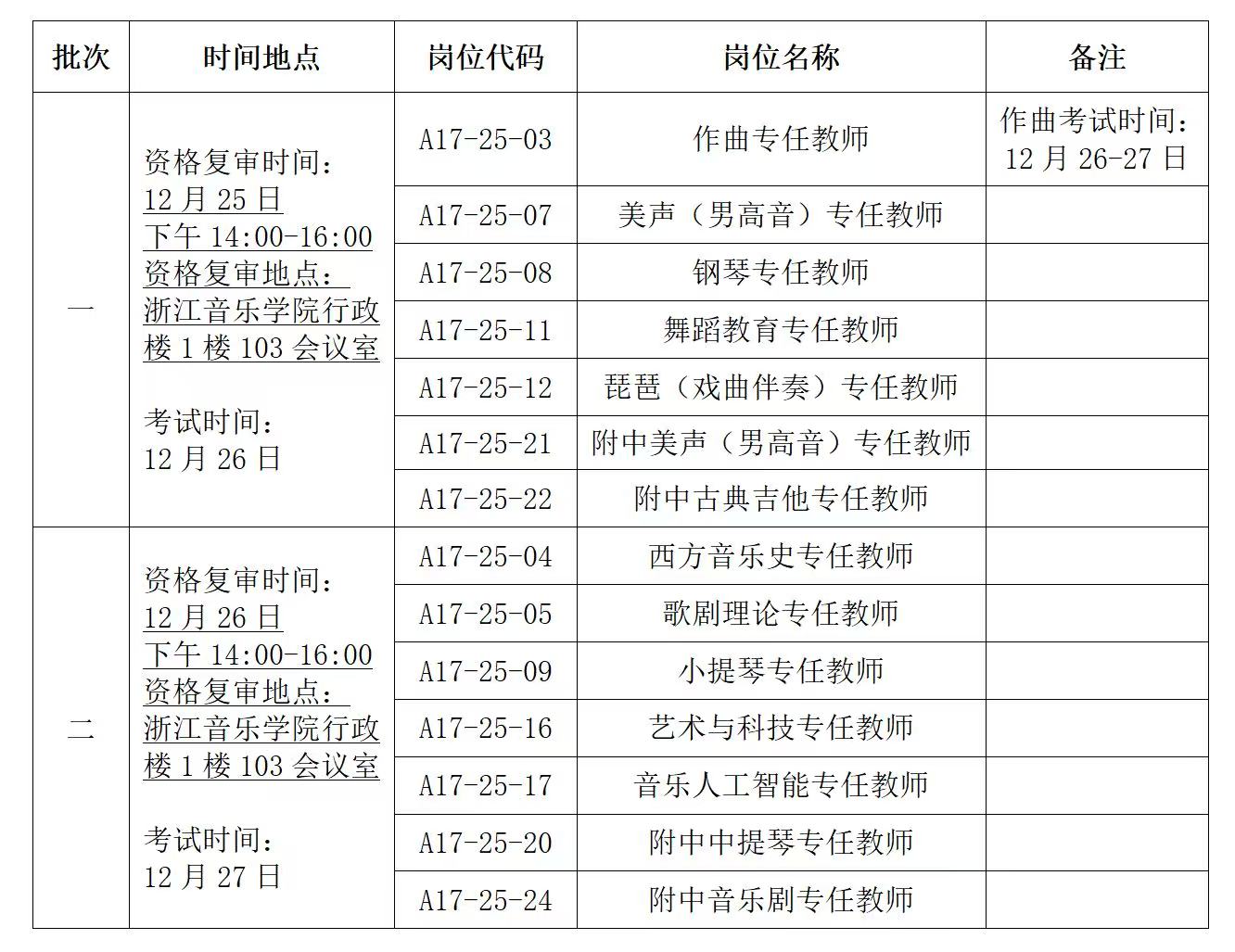 根据《浙江音乐学院2025年下半年特殊专业技术岗位公开招聘考试预告》安排,学校对开考岗位报名材料进行了资格审核,资格初审结果已通过报名系统反馈。根据学校考试工作安排,现就有关事项通知如下: