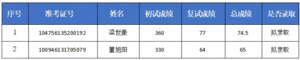 经学校研究生招生委员会审定,现对调剂复试考生拟录取名单予以公示,具体名单如下。
