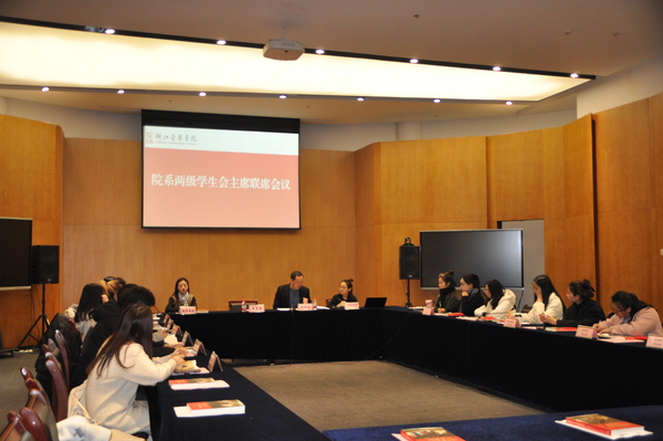 与会人员一起学习了党的十九届五中全会精神和省委十四届八次全会精神。会上,各系学生会代表依次发言,结合本学期开展工作的情况进行了总结,并就下一阶段的重点工作和活动进行了交流。大家围绕学生会建设,就如何进一步提高服务水平、加强合作交流、提高活动质量、开展社会实践等内容进行了深入研讨。大家一致认为,院系学生组织一定要紧密围绕学院中心工作,发挥好桥梁纽带作用;加强不同系(学院)之间的交流与互动,开展跨专业合作,创新活动载体,丰富实践内涵;严格落实学生会改革要求,精简机构人员,按时开展换届,提高服务水平,打造有温度、有广度、有效率的学生组织。交流现场气氛活跃,大家纷纷表示,今后将进一步加强院系学生会的交流合作,共同为广大同学做好服务。