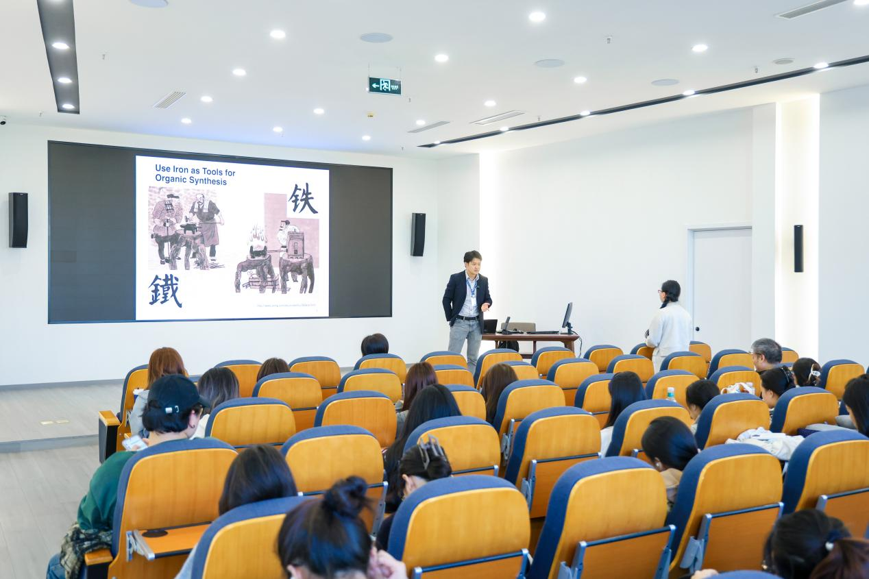 为打破学科壁垒,搭建科学与艺术跨界交流的桥梁,拓宽师生学术视野与创新思维,教务处联合西湖大学教学事务部精心策划的“当科学遇见艺术”系列讲座于 10 月 23 日在浙音讲堂正式拉开帷幕。首场讲座特邀西湖大学知名科学家尚睿教授主讲,围绕“有机电子材料以及其可持续的催化合成”这一前沿主题,为现场师生带来了一场兼具科学性与启发性的知识盛宴。