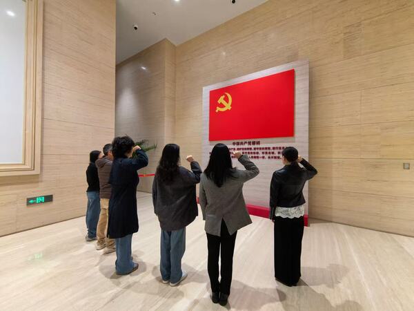 在纪念馆中央庄严肃穆的党旗广场,全体党员整齐列队,面向鲜红的党旗,郑重举起右拳重温入党誓词,“我志愿加入中国共产党,拥护党的纲领,遵守党的章程……”铿锵有力的誓言在展厅内久久回荡,不仅是对初心使命的庄严回望,更是对未来践行党员职责的坚定承诺。参观结束后,党员们纷纷驻足“初心留言墙”,认真写下自己的感悟与决心,承诺将以更饱满的热情、更务实的作风投身馆藏建设与读者服务工作。