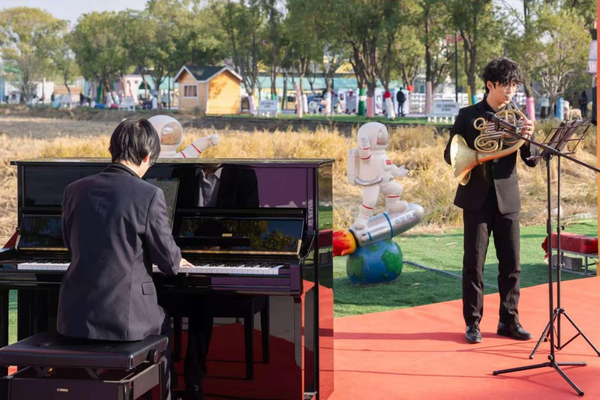 秋风拂过稻浪,田园风光与悠扬乐声交织,绘就了一幅别具一格的秋日图景。11月22日,由艺术指导教学部直属党支部、钢琴系党总支与转塘街道综合文化站、中共杭州市西湖区转塘街道何家埠社区总支部委员会共同承办“阅西湖·悦转塘·越未来——稻浪书韵·音为有你”主题活动在西子嘉年华精彩上演,活动得到了声歌系党总支、管弦系党总支、国乐系党总支、何家埠社区·西子嘉年华协办支持。活动现场,学生演员们凭借精湛的技艺,为观众呈现了一场视听盛宴,既展现了西洋音乐的优雅风韵,又传递了传统音乐的深沉内涵,令每一位在场观众都沉醉于艺术的瀚海之中。