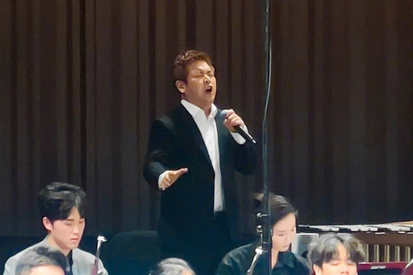 音乐会的终曲为唢呐、人声与乐队《百鸟的传说》,由任同祥演奏谱、王甫建改编,特邀中国首位唢呐博士、上海音乐学院青年演奏家刘雯雯副教授担任唢呐独奏,音乐教育学院汪昌博老师担任演唱。刘雯雯的演奏技巧娴熟、表现力丰富,唢呐高亢嘹亮的音色模拟出百鸟争鸣的生动场景,与男声、乐队的配合相得益彰,经典旋律经过重新编配后更具时代感,将作品欢快灵动与浓郁的民间色彩推向高潮,现场掌声雷动。
