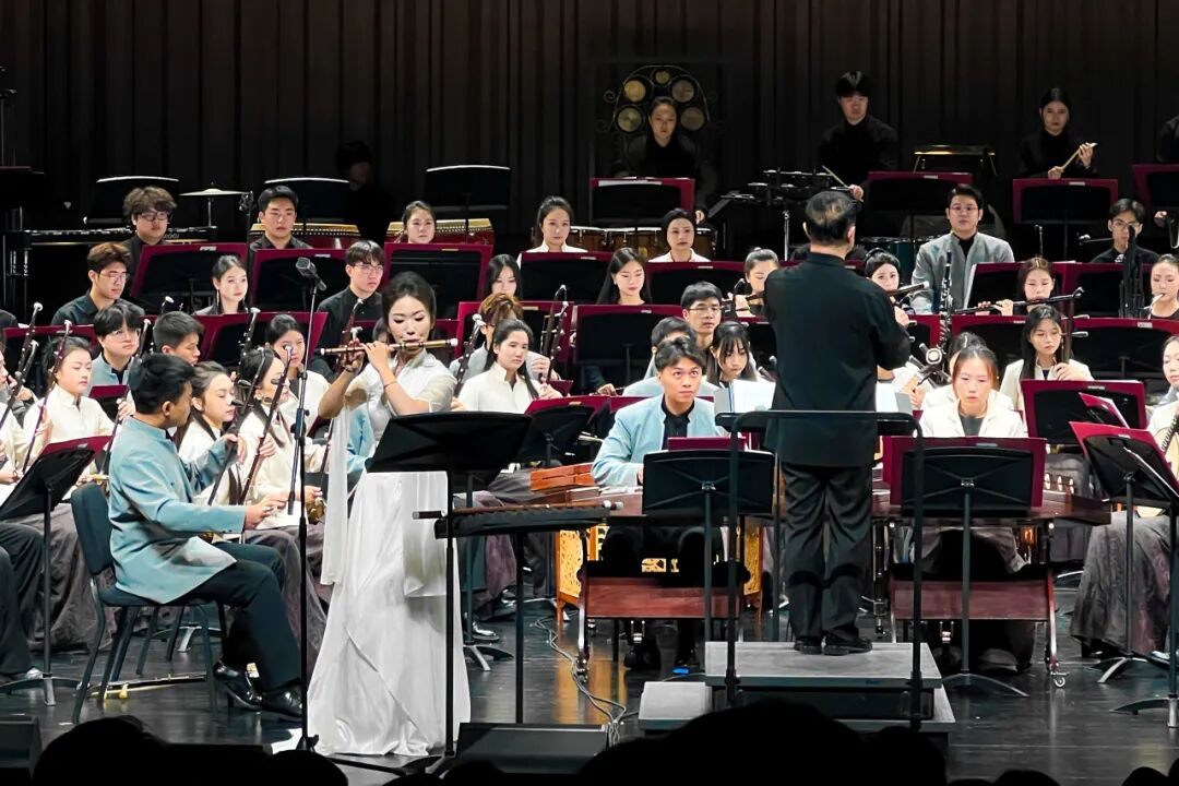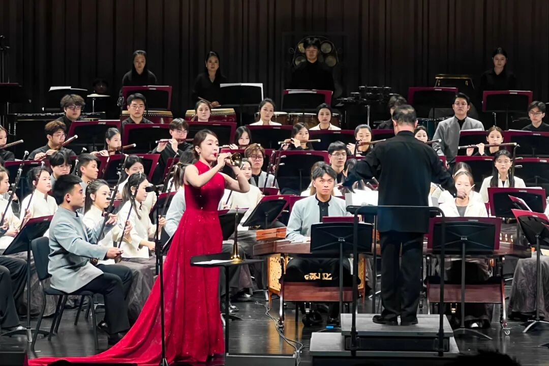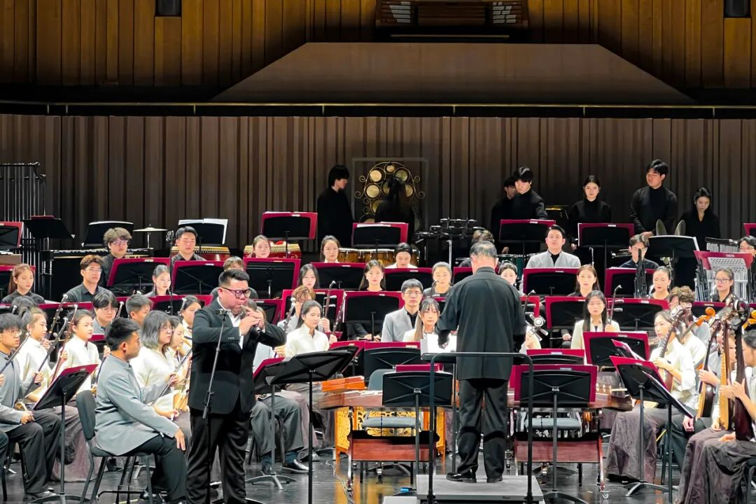 12月19日,以“华韵千秋 时代劲声 吐纳乾坤”为核心主题的《大曲神韵·天地间》音乐会在学院音乐厅精彩上演。本场音乐会,浙音民族室内乐团联手民族乐队学院精彩演绎《飞歌》《山神》《神曲》《百鸟的传说》4首经典吹管乐作品,以多样的音色与精湛的演奏技艺,为观众呈现了一场独具东方神韵的民乐盛宴。
