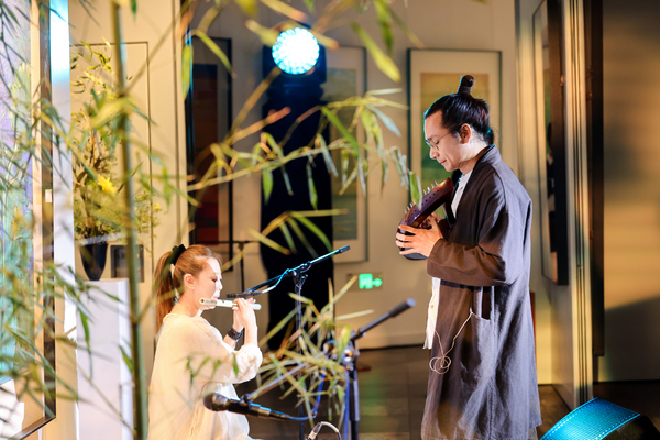 本次艺术周突破传统演出框架,在参与感、体验性上作了大量创新设计,将音乐听赏体验升级为“沉浸式身心灵修复计划”。特邀来自印度的资深瑜伽导师Mani引领观众通过呼吸冥想回归身心本真;云南自然音乐人、手工乐器制作人阿坚与笛箫演奏家孙源,携亲手斫制的原木、竹节等乐器登台,以风声、水滴、鸟鸣为灵感,奏响《山谷有声》《空谷心音》《灵音净心》等作品,将自然声景的律动引入西湖之畔。学院师生深度参与,国乐系杜竹松教授、章怡雯副教授带领学生,用古琴独奏、琴箫合奏等形式呈现了《流水》《关山月》《梅花三弄》等作品,让观众感受到传统国乐与自然美学深度融合的东方意境。每场演出均在参与共创的《诗经·鹿鸣》音乐和鸣声中圆满落幕。