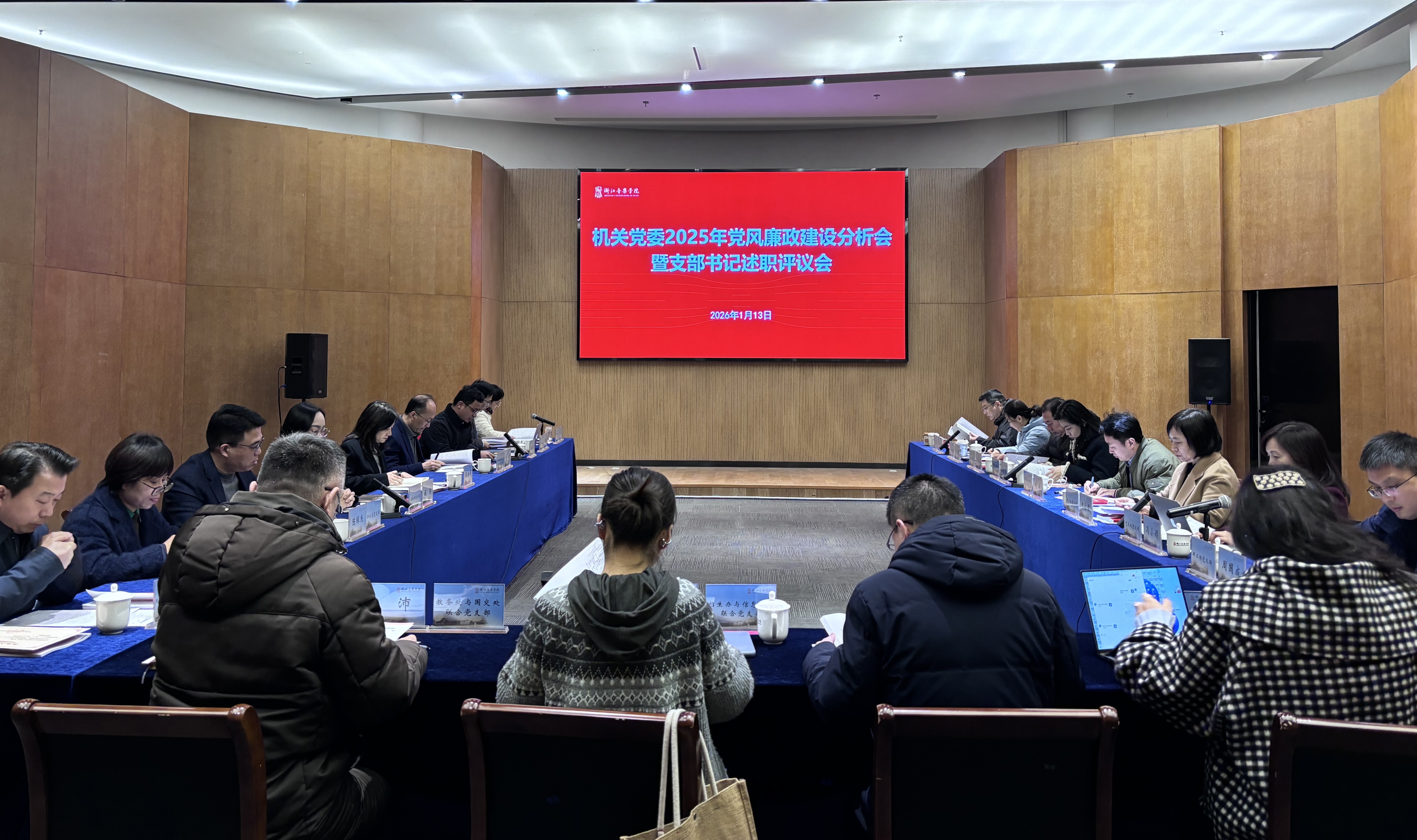 为深入总结机关党建年度工作成效,精准剖析机关党风廉政风险,压紧压实全面从严治党主体责任,1月13日上午,机关党委召开2025年党风廉政建设分析会暨支部书记述职评议会。学院党委副书记蔡亦军,党委委员、组织部(人才办)部长(主任)李俊,党委委员、宣传部(教师工作部)部长施莹出席会议,机关党委委员及机关党支部书记参加会议。