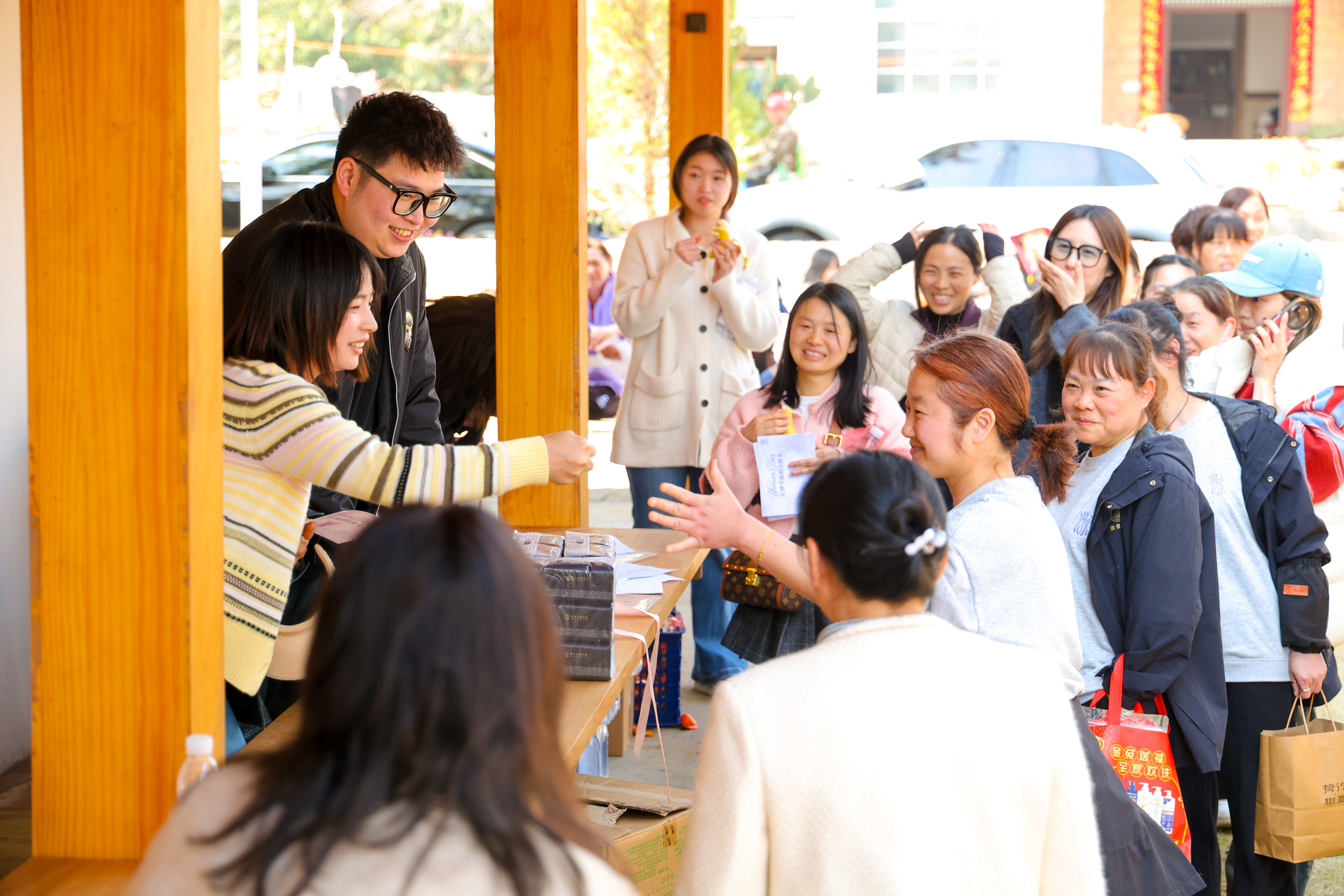 活动场地配套多元休闲区域,艺术空间、茶室、书吧、面包房错落有致。趣味环节结束后,大家自由休憩,或围坐茶室品龙井新茶,或伴咖啡香气闲谈小坐,或在书吧与艺术空间慢享时光,搭配清甜点心,在悠闲惬意的氛围里享受专属美好时刻。活动尾声,公司为每位女员工送上精美节日礼品,一份份礼品承载着公司对女员工的真切关怀与美好祝福,让大家在收获快乐之余,更感受着乐典大家庭的温暖。