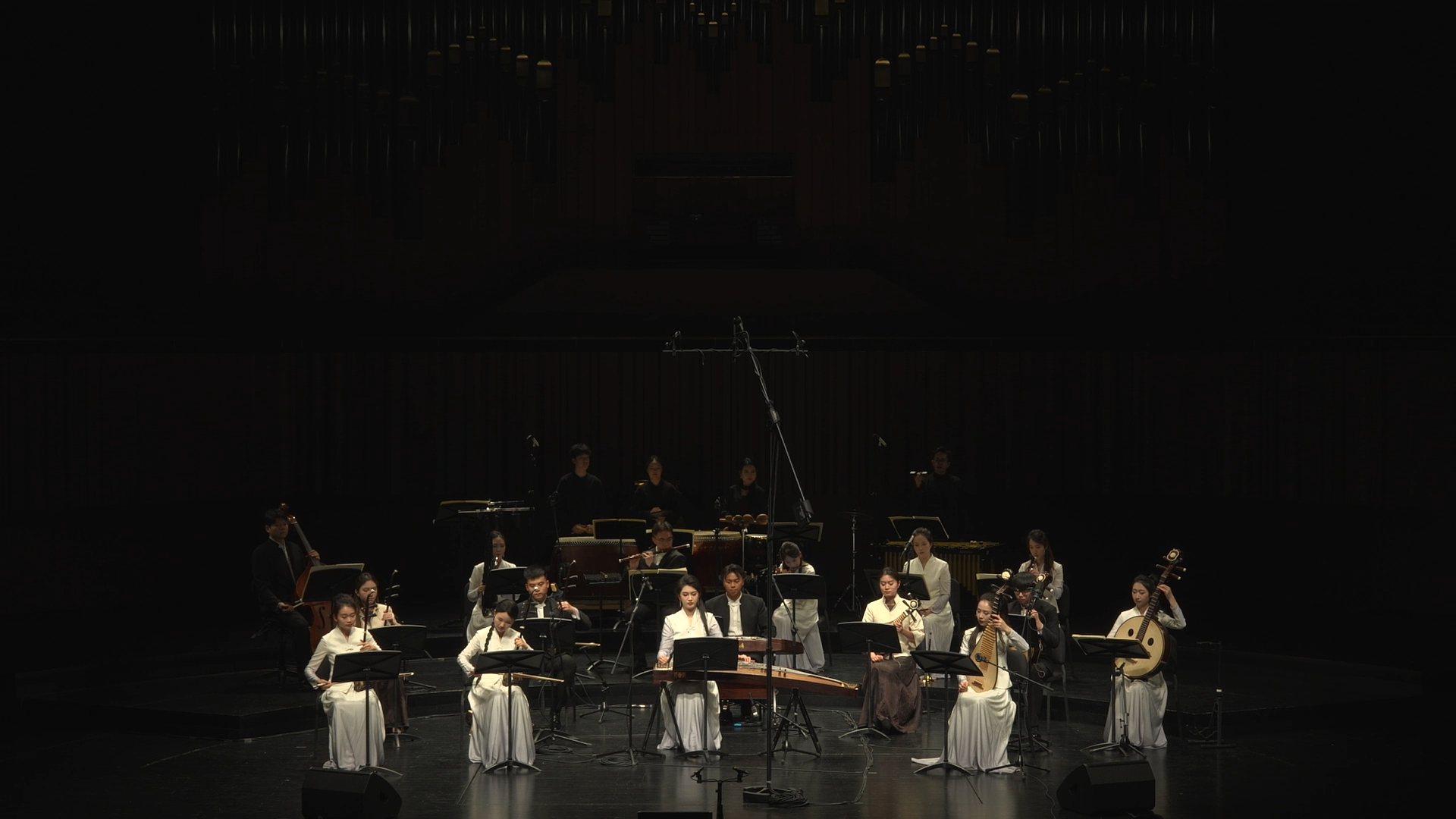 本场音乐会曲目编排独具匠心,“回响集萃”意为经典回响、佳作荟萃,既包含承载时代记忆的经典之作,也有彰显地域特色的原创精品。开场曲目《引子与诗语江南》选自杭州亚运会专场民族音乐展示,以灵动的旋律勾勒出江南水乡的诗意画卷,让观众在音符中感受亚运盛会与江南文化的交融碰撞;《无锡景》则选自主题音乐会《东西南北风》,用婉转曲调诉说江南市井的烟火气息,传递出浓郁的地方人文情怀。从《包楞调》的明快活泼到《幽兰逢春》的清雅悠远,从《天鹅》的静谧空灵到《染》的意境绵长,再到《赶牲灵》的西北豪情与《编花篮》的中原乡韵,8首曲目风格各异、韵味十足,涵盖了江南小调、西北民歌等多元音乐风格,既展现了民族室内乐在音色融合、情感表达上的独特优势,也让观众沉浸式领略了中国不同地域的音乐文化魅力。
