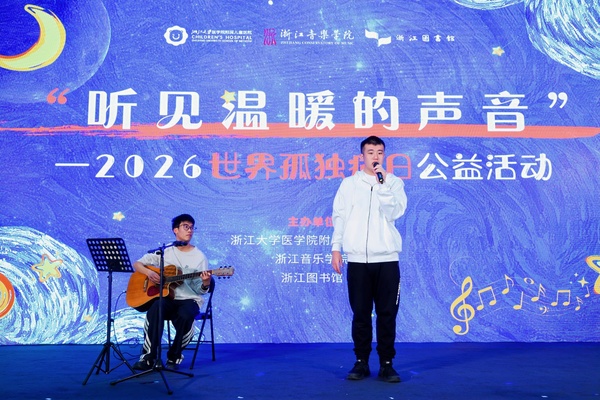 活动最终环节,专为孤独症儿童打造的原创歌曲《星光》正式发布并首唱。该作品是浙音联合浙大儿院、国内外艺术家推出的“听见温暖的声音”疗愈音乐创作计划的项目成果,以“星光”“翅膀”等意象勾勒陪伴与希望。领衔演唱的学生之一,是曾亮相2026年央视春晚、“中国唱将”全国十强、浙音音教学院学子郑心烨。她感慨道:“歌声不仅是艺术的表达,更是连接心灵、传递善意的桥梁。希望能用音乐让更多人理解并关爱‘星星的孩子’。”