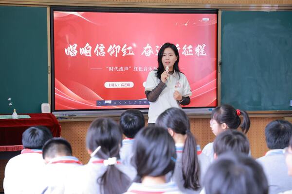 在青田县城东实验小学教育集团,总校长杨冬平、少年宫路校区音乐组全体教师共同参与活动。高艺璇充分发挥专业优势,采用生动讲解与现场示范相结合的方式,引导学生深入理解红色歌曲背后的历史脉络与精神内涵。她从音乐表现力与情感传达入手,带领学生在旋律中感受信仰的力量。通过互动式教学,学生们的演唱热情被充分激发,红色旋律在课堂上久久回荡。