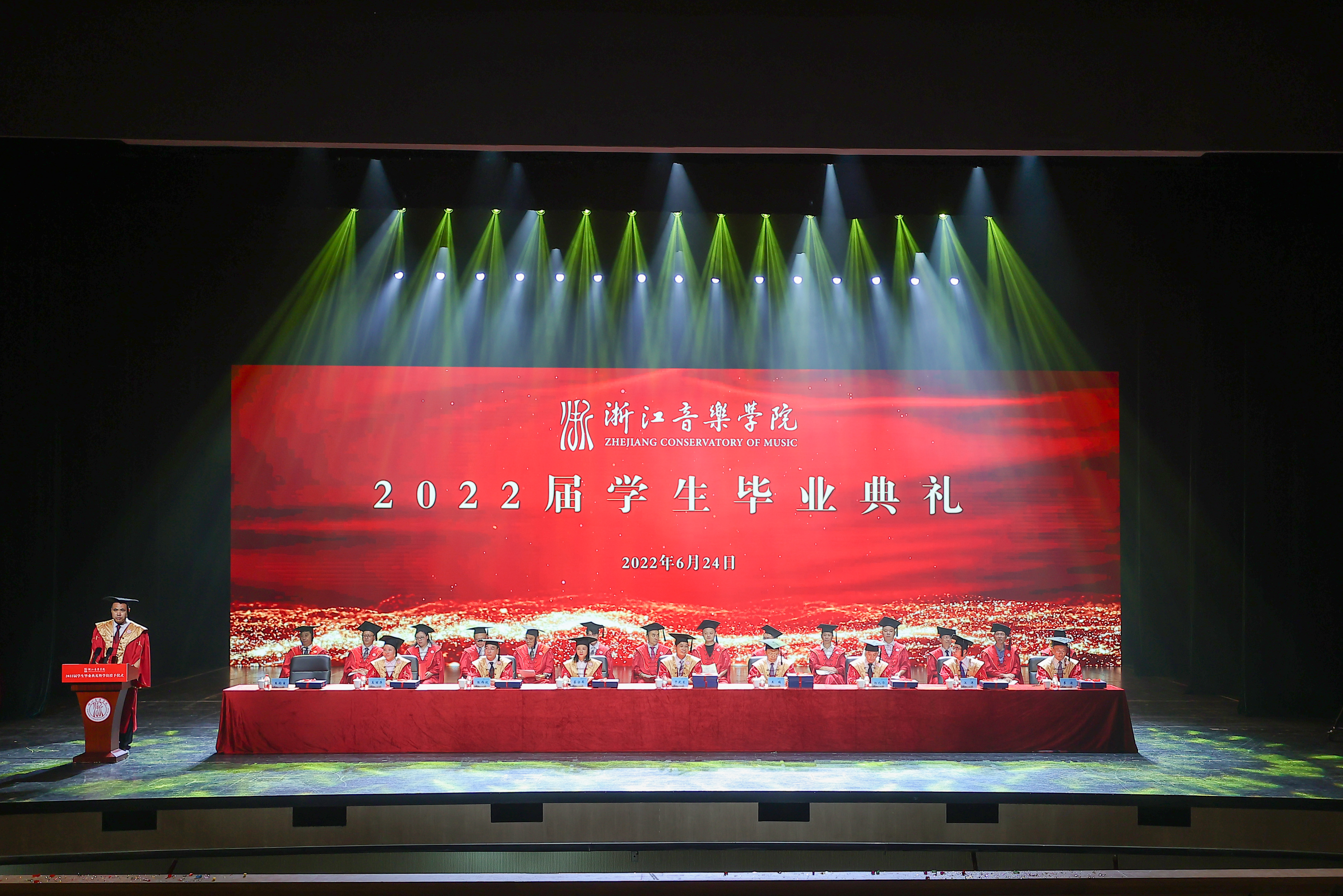 浙音是一所创建于新时代的艺术大学,在“事必尽善”校训精神的指引下,学校追求卓越,敢为人先,勇立潮头,通过一系列改革创新,建构了具有浙音理念和浙音特色的高质量的发展模式。其中,由乐队学院、室内乐学院、民族乐队学院、歌剧学院、合唱学院以及叔同学院共同建构的“本科+”教学机制为全国首创,两年多来,一批同学在国内外重要赛事中获奖,2022届许多同学成为五大学院的首届学生,你们的协奏曲专场、室内乐音乐会、贝多芬全套交响曲以及布鲁克纳《第二交响曲》等等,充分展现了同学们的良好素养和优秀能力。同时,学校创设了音乐学研究所、舞蹈学研究所、戏剧学研究所、高等音乐教育研究所、艺术与文化管理高等研究院,获批文旅部“数字音乐智能处理技术”重点实验室等科研平台,建构了全国同类院校中最为健全的科研机制。学校创办的“杭州现代音乐节”已成为全国第四个国际化高水平的现代音乐节,今年总部位于维也纳的国际著名的“环球音乐出版社”加盟杭州现代音乐节,杭州现代音乐节国际管弦乐作曲比赛获奖作品将由该出版社出版。此外、浙音国际室内乐节、国际钢琴艺术节、国乐艺术节、城市阳台音乐会、乡村文化礼堂等等,让杭州这座古老的城市更加具有现代气度和人文品质。2022年,浙音两万两千多名本科考生和460名第一志愿上线研究生的现象表明,浙音已经成为全国考生心目中最向往的艺术殿堂。这一切是全校师生在“事必尽善”校训精神指引下,勠力同心、开拓进取的成果。因此,我们可以自豪地说,浙音是值得广大同学为之骄傲、为之荣光的母校。