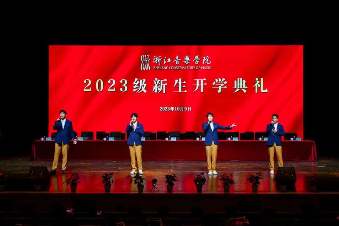杭州亚运会开幕式主题曲《同爱同在》领唱、流行音乐系4名同学为大家带来了精彩的热场演出。