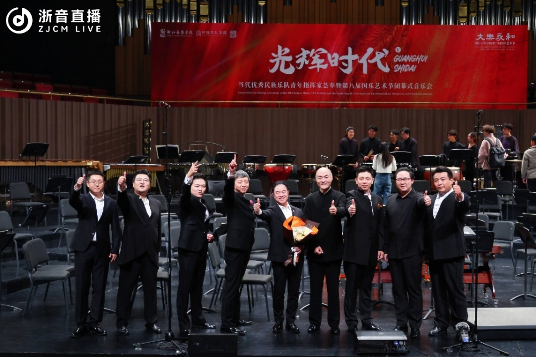 高伟、冯天佑、李浩然、张伟、于帆、马帅、曹波、刘沙等8位国内一线青年指挥家还在艺术节闭幕音乐会中接力登台,联袂演奏当代老中青优秀作曲家的经典作品。11月6日,8位青年指挥家与浙江音乐学院民族乐队学院联袂献艺,为现场观众共同呈现了一场《光辉时代V——当代优秀民族乐队青年指挥家荟聚暨第八届国乐艺术节闭幕式音乐会》精彩演出。