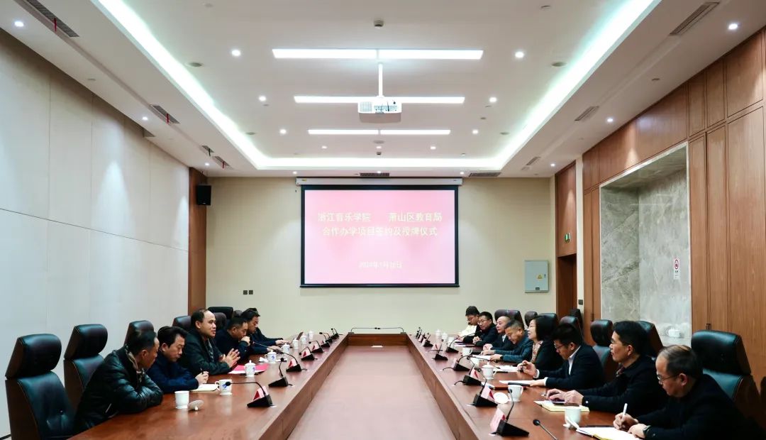 为全面贯彻落实习近平文化思想和习近平总书记考察浙江重要讲话精神,加快推进高水平音乐学院建设,加强高质量艺术教育供给,助力共同富裕示范区和文化高地建设,加快推动浙江音乐学院附属音乐学校(即浙音附中)“1+X”集团化办学进程,近日,学院与萧山区教育局举行合作办学项目签约。学院党委副书记王均寅,萧山区副区长杨新程,萧山区教育局党委书记、局长章建平,学院社会合作中心(校友办)、附属音乐学校以及萧山区政府、区教育局、萧山五中等单位负责人参加仪式。