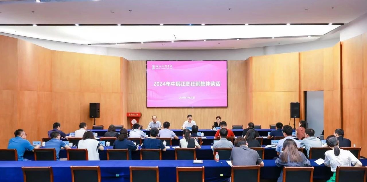 7月26日下午,学校召开中层正职任前集体谈话会。党委书记干武东出席会议并讲话,党委副书记蔡亦军,党委委员、组织部(统战部)部长、人才办主任李俊,以及全体新提任及轮岗交流的中层正职干部参加会议。