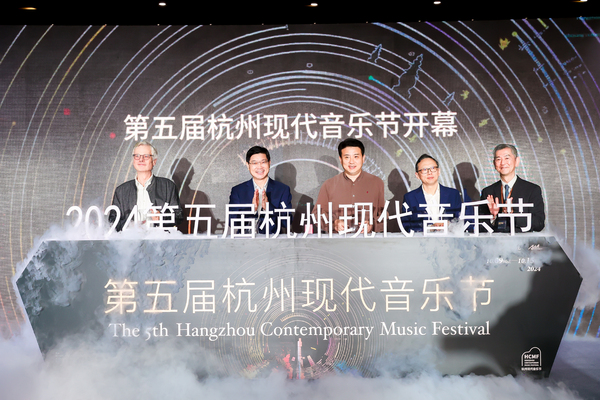 驻节艺术家、著名作曲家约尔格·彼得·米特曼,著名作曲家、指挥家、东京小交响乐团音乐总监与指挥板仓康明,西湖区委书记董毓民,浙江音乐学院党委书记干武东,院长王瑞共同宣布杭州现代音乐节开幕。