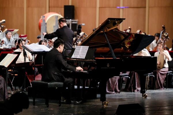 《大乐永和》国乐音乐会由浙音民族乐队学院艺术总监王甫建教授担纲指挥。大乐与天地同和,大礼与天地同节。音乐会包含“音韵相和”之意,更表达出浙音对中华传统文化深刻内涵的致敬与传承。国乐大曲《高山流水 青青思念》将浙派古筝经典曲目《高山流水》与新创作品《青青思念》进行创新性拼贴镶嵌,“山河之歌”与“人间清曲”交相呼应;民族管弦乐《曙光·启航》讲述南湖樯橹轻摇间孕育的百年风雨变换;《兰亭》将行云流水的千年墨迹用古筝和乐队形式表现;《雪意断桥》《忆江南》《山水长卷》融合浙音钢琴、声乐、管弦等演出力量,从不同层面描绘了江南美景与人文哲思。特别值得一提的是,中国鼓与乐队的《龙腾虎跃》震撼登场,在经典作品中创造性融入浙东渔乡锣鼓等民间音乐和管风琴等西方音乐元素,昂扬奋进又质朴纯真,充分展现了新时代民族音乐的开放包容,以及中华民族龙腾九霄蟠四海,虎跃万里踞五洲的恢弘气魄。