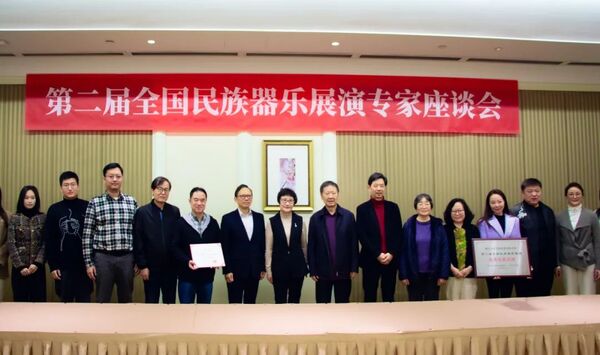 专家代表为浙音民族乐队学院颁发“优秀民族乐团”证书和牌匾。
