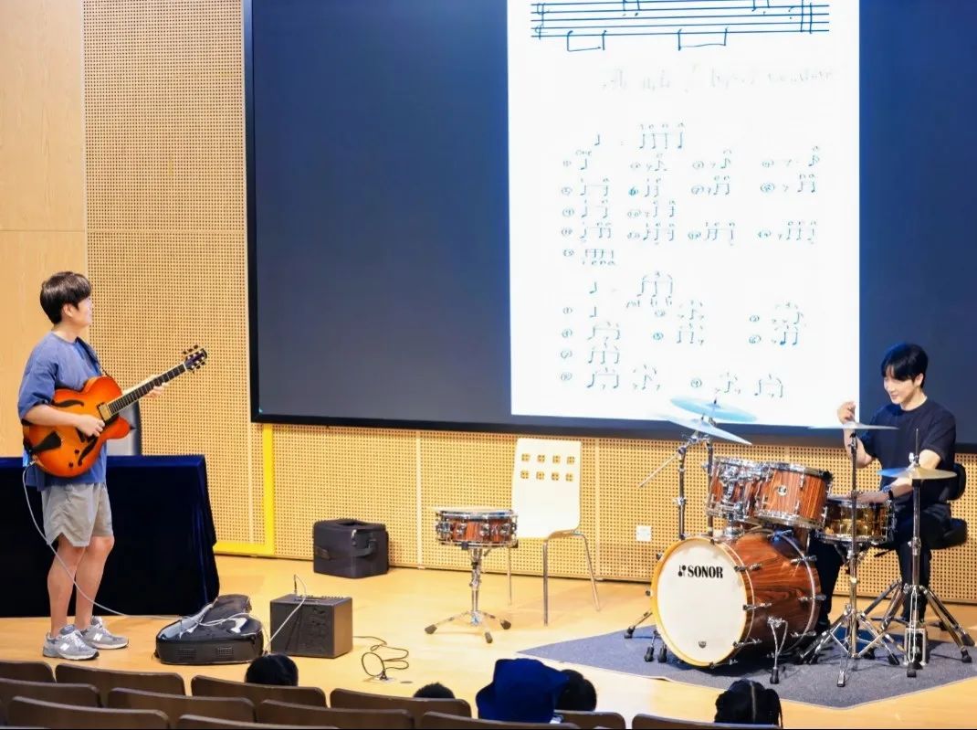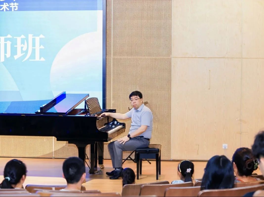 活动创新美育模式,构建“展演+教学+实践”三位一体的艺术教育体系。除精彩纷呈的舞台展演外,同期举办的系列大师班同样亮点频现。本次大师班活动涵盖钢琴、声乐、古筝、二胡、笙、琵琶、小提琴、流行演唱、爵士鼓、吉他等十余个专业领域,共举办8场专题教学活动。活动特别邀请校内知名专家教授,针对展演中集中呈现的共性问题进行深入剖析和现场指导。每场大师班都吸引了众多音乐爱好者,现场气氛热烈,座无虚席。老师们通过系统讲解、即兴示范、互动指导等多种形式,毫无保留地分享艺术心得。学员们全神贯注聆听,积极提问交流,在专业技巧和艺术表现力等方面获得了显著提升。这种面对面的大师授课,不仅解决了学员们的实际困惑,更拓展了他们的艺术视野。参与学员纷纷表示,大师班的学习经历让他们对音乐艺术有了更深刻的理解,演奏(唱)水平得到质的飞跃,这种理论与实践相结合的教学模式让他们获益匪浅。