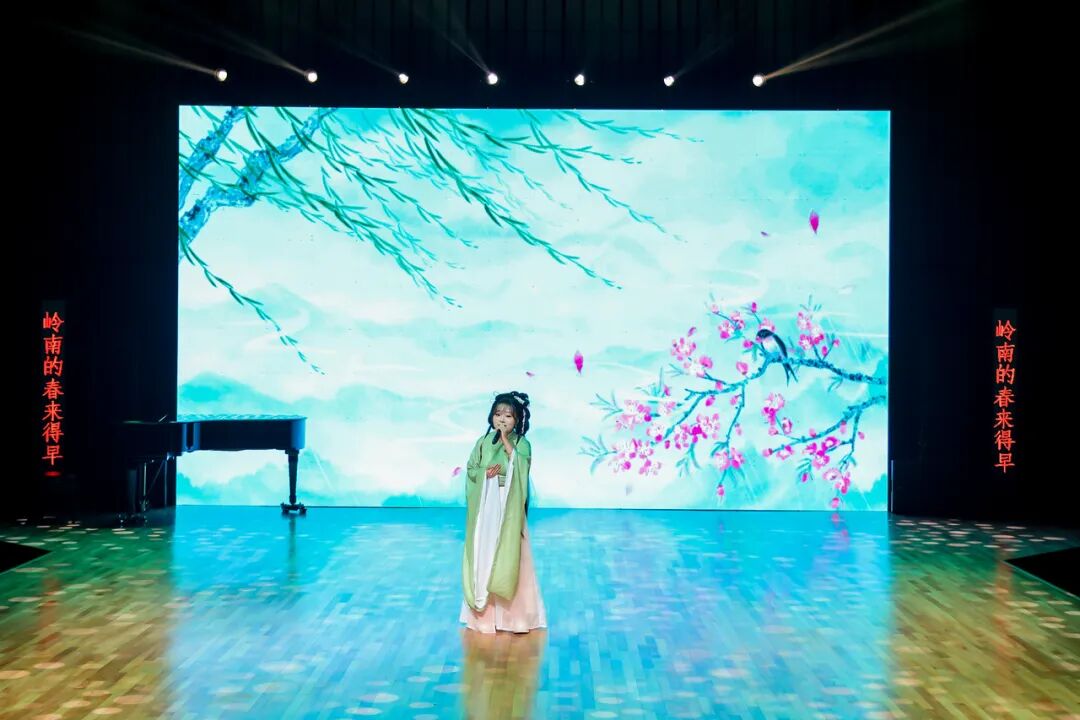 歌曲《岭南春早》由甘世佳作词、李林作曲。作品选用岭南春日看似平凡的日常元素,以流畅而富有层次的中国传统五声调式的旋律线条,运用了偏音宫音与之结合,营造出一种既古典又现代、具有朗朗上口兼具艺术性的听觉效果。