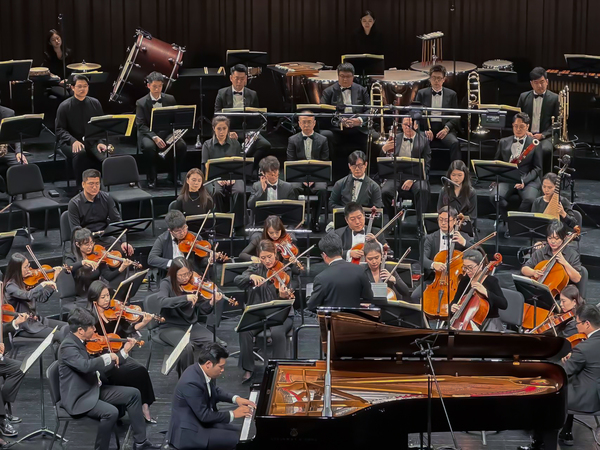 在这场高规格的音乐盛宴中,学院师生积极参与、全情投入。音乐会上半场,钢琴协奏曲《黄河》震撼上演。这部创作于1969年的经典之作,以《黄河大合唱》为蓝本,将民族音乐的魂魄注入钢琴的黑白键之中。钢琴系青年演奏家吴君麟,与11所音乐学院优秀青年演奏家组成的联合乐团默契配合,在中国音乐学院教授、指挥系主任金野教授的执棒下,以极具张力的演奏将黄河的怒吼与民族的呐喊交织在一起,迸发出排山倒海的力量,奏响了中华民族不屈不挠的壮丽史诗。
